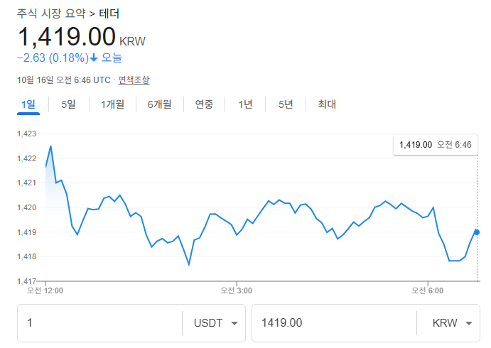 ※ 테더 가격과 달러 가격(환율)은 같다. (2025.10.16. 16:52 기준)